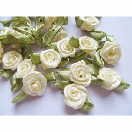 100 pcs Satin Ribbon Rose w/ Leaf - Ivory