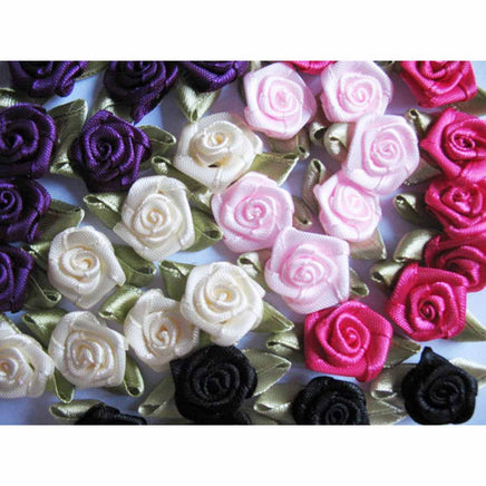 100 pcs Satin Ribbon Rose w/ Leaf - Mix
