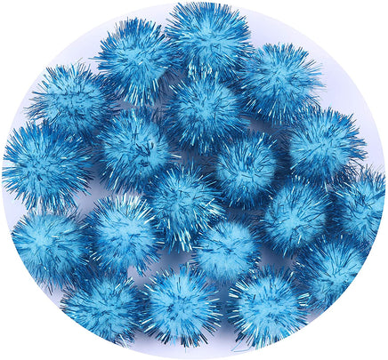 100pcs Glitter Tinsel Pom Balls 1" (25mm) - Aqua