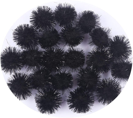 100pcs Glitter Tinsel Pom Balls 1" (25mm) - Black
