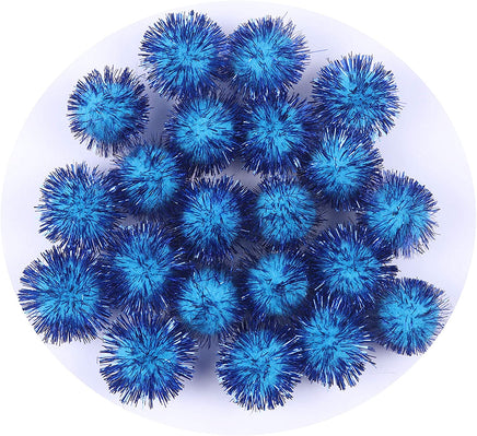 100pcs Glitter Tinsel Pom Balls 1" (25mm) - Blue