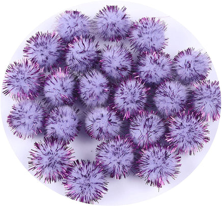 100pcs Glitter Tinsel Pom Balls 1" (25mm) - Lavender
