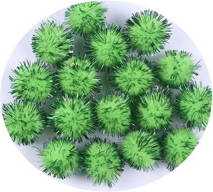 100pcs Glitter Tinsel Pom Balls 1" (25mm) - Lime