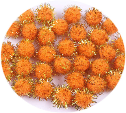 100pcs Glitter Tinsel Pom Balls 1" (25mm) - Orange