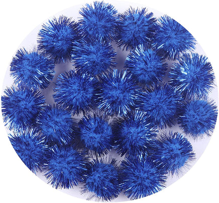 100pcs Glitter Tinsel Pom Balls 1" (25mm) - Royal