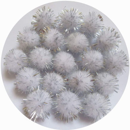 100pcs Glitter Tinsel Pom Balls 1" (25mm) - White/Silver