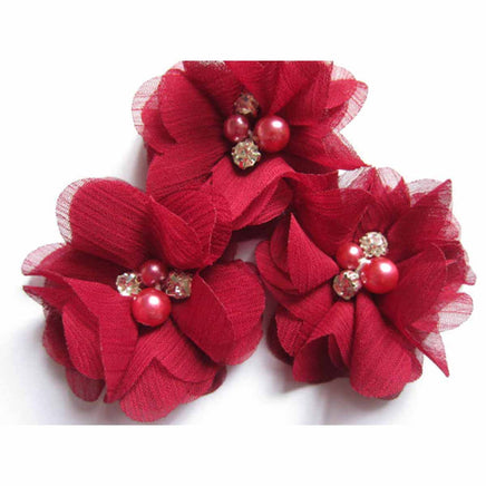 20 Chiffon Silk Flower Rhinestone Pearl 2" - Burgundy