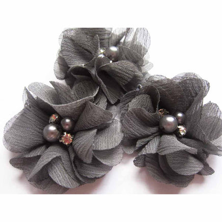 20 Chiffon Silk Flower Rhinestone Pearl 2" - Dark Grey