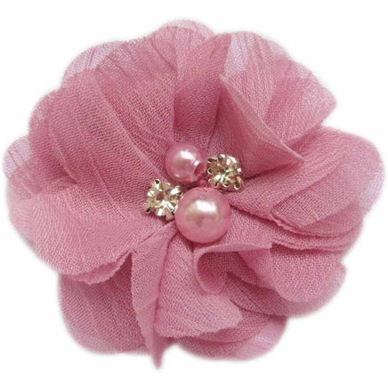 20 Chiffon Silk Flower Rhinestone Pearl 2" - Dusty Pink