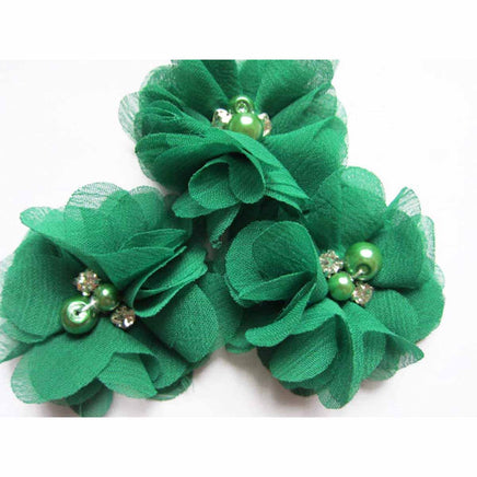 20 Chiffon Silk Flower Rhinestone Pearl 2" - Emerald Green