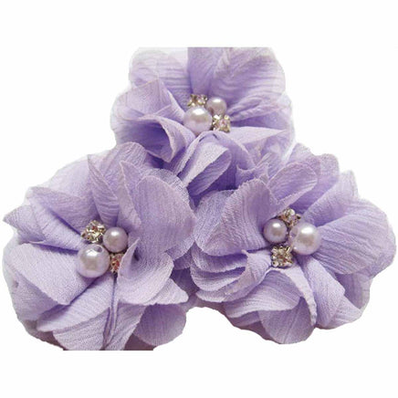 20 Chiffon Silk Flower Rhinestone Pearl 2" - Lavender