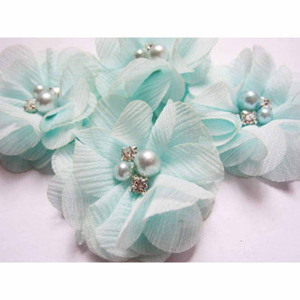20 Chiffon Silk Flower Rhinestone Pearl 2" - Mint