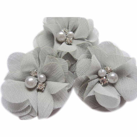 20 Chiffon Silk Flower Rhinestone Pearl 2" - Silver