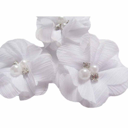 20 Chiffon Silk Flower Rhinestone Pearl 2" - White