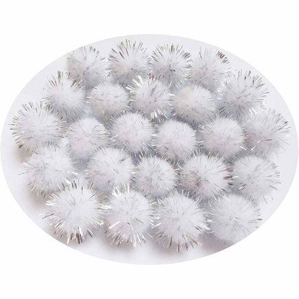 200pcs Glitter Tinsel Pom Balls 20mm-U PICK - White/Silver