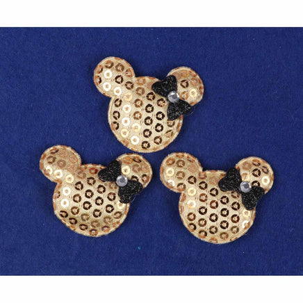 30 Padded Sequin Mouse w/Bow 1.5" - Gold