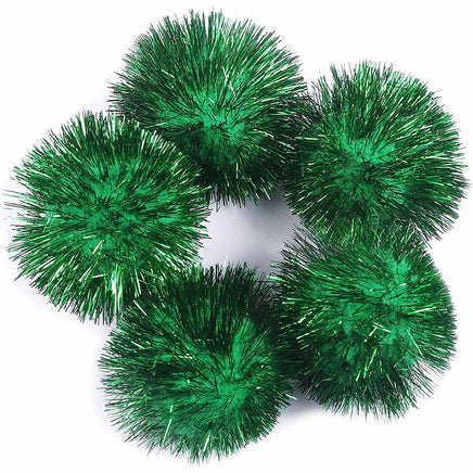 30pcs Glitter Tinsel Pom Balls 1.5" - Emerald Green