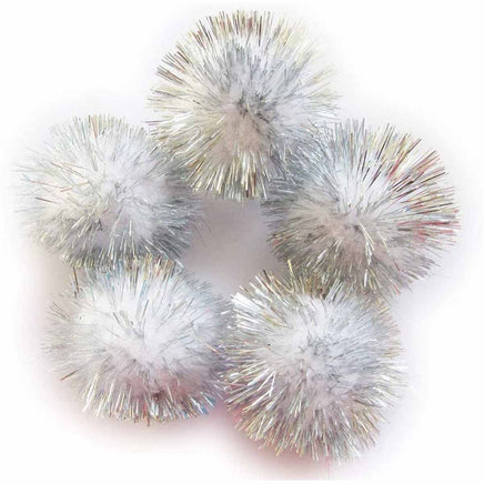 30pcs Glitter Tinsel Pom Balls 1.5" - White/Silver