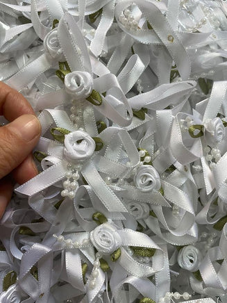 - 60 pieces Handmade white Satin Ribbon Bow with Rose.Very beautiful and elegant ,even much better in person.